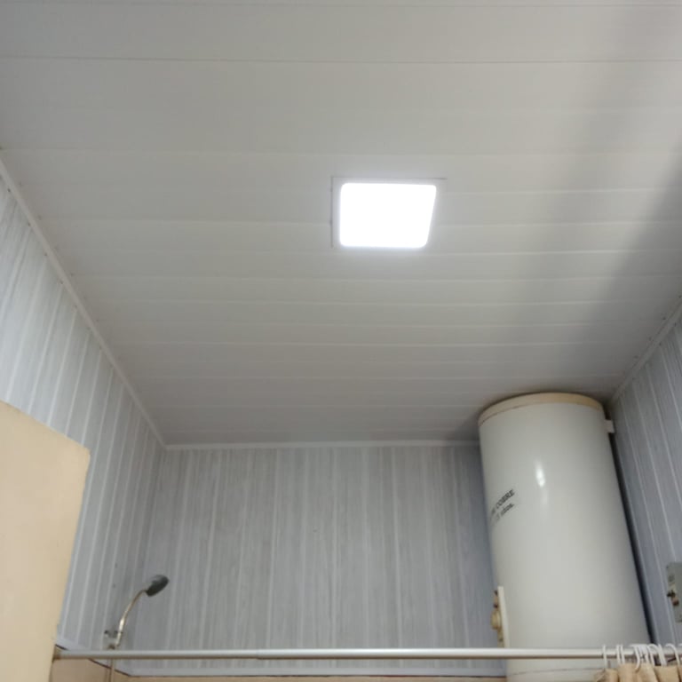 Renovación de espacios con cielorrasos y revestimientos en PVC, incluye aislamiento térmico.